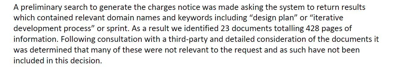 When the letter came back from the DTA explaining they were going to stick to their guns over the $750 charge, I had two points of interest. First was the description of the search process and documents identified to date: