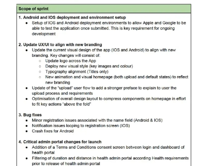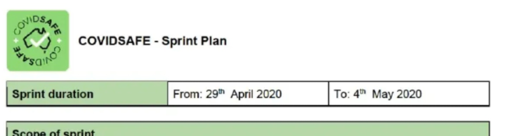 Among them was a copy of a “sprint plan” that described the work to be done on the COVIDSafe app over five days in late April: