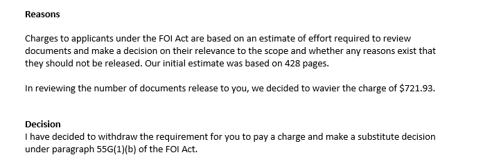 A few months later, on 15 March 2021, yet another twist came with a letter to my inbox announcing the agency was backing down. At the very beginning, the impetus for this entire series was a $753.13 charge the DTA wanted to slug me for access to documents that may shed light on the proper use of public money. Even when I challenged this, arguing the agency should waive the fee on public interest grounds, the agency stuck to its guns, demanding $721.93 for what ended up being three documents.