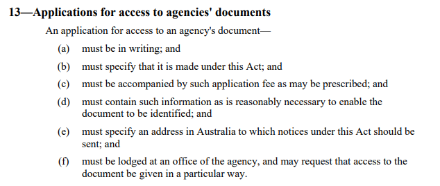What makes this outrageous is that it’s all largely unnecessary. Check Section 13 the Freedom of Information Act 1991 (SA) and you will find there is no requirement in law for anyone to provide 100 points of ID, file their application with their local police station, “verify” their postal address, or even provide one where an email address is available: