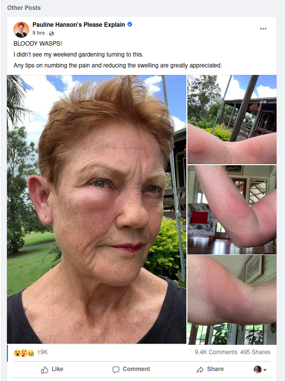 On the same day Ash Barty won at the Australian open it was reported far right leader Pauline Hanson was attacked by a swarm of wasps. As has been pointed out elsewhere, it might just be the best Australians will get for quite some time.