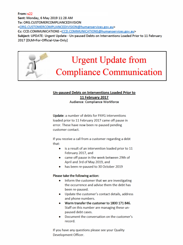 This story starts way back in 2019 when I first started dabbling with Freedom of Information (FOI) as an investigative tool and I had a tip about a legitimate, bona-fide cover -up within Services Australia. The facts of the situation were fairly straight forward: thousands of debts had “come off pause” and been issued by mistake; a memo had gone around within the agency obliquely telling compliance officers of said screw up; compliance teams were also told that if anyone phoned in with debts issued between certain dates, they should hand them off to a special team to deal with.