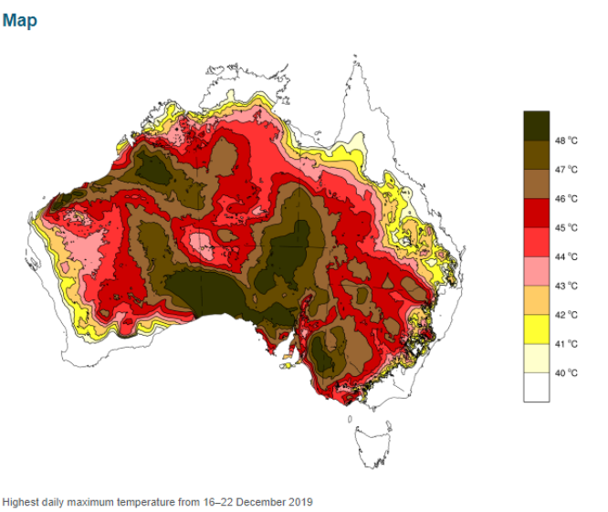- Into the BrownIn a reminder that while we’re confronted with one crisis, the existential threat of climate change has not abated, the Bureau of Meteorology released a report mapping the extreme heat Australia sweltered through during December and January 2019. With media organisations rapidly order their staff to work from home and devoted the bulk of their resources to covering the global crisis that is COVID-19, the story seemed to have been missed. The headline was that between 16 and 22 December 2020, the majority of the Australian continent cooked under temperatures of 40 degrees or above: