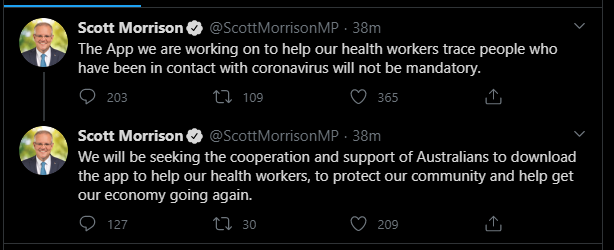 Triple M Hobart seemed pretty chuffed to have a call from the Prime Minister last Friday morning. During his spot, Scott Morrison urged every Australian to aid in the exercise of contact tracing by dutifully downloading a soon-to-be-released government-developed app that uses bluetooth to record their recent contacts. When pressed about whether he would make the app compulsory if there wasn’t enough take up, Morrison — weirdly — refused to explicitly rule out making it compulsory down the tracking, saying he wanted to give people “a chance to get it right”. Morrison’s attempt to preserve his options triggered a public panic as people freaked out over the “mandatory app”, forcing the PM’s social media people to make an official statement by Tweet days later clarifying that the app would not, in fact, be compulsory from the outset…