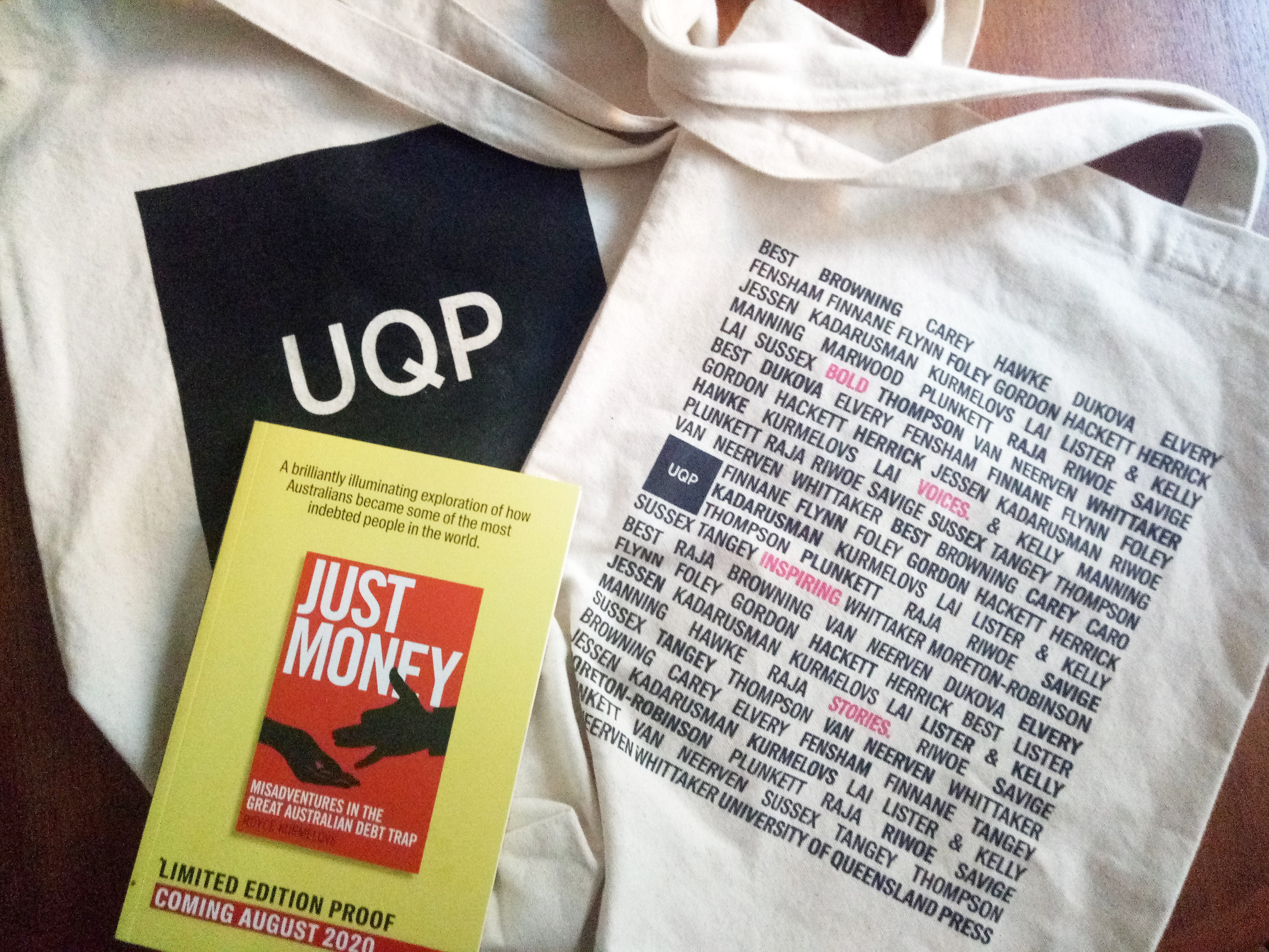 A little while ago I was tipped by sources that my publisher, the University of Queensland Press had printed a tote bag with my surname repeated alongside authors significantly more reputable than myself. When I followed up, my publisher confirmed this to be true and sent me a couple of the artifacts as proof. My reaction upon receiving them was (and remains) a mix of deep flattery, total awkwardness and an urge to crack jokes at my own expense.